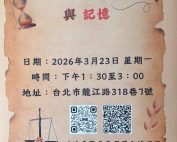 台北據點3月23日將舉辦月聚會,歡迎大家到龍江路和我們相聚喔。