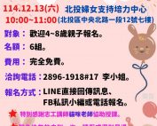 12月北投婦培親子語言課程開跑囉,大家快來報名吧。