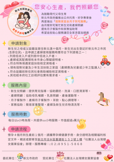 2025年新北市弱勢家庭坐月子到宅服務實施計畫