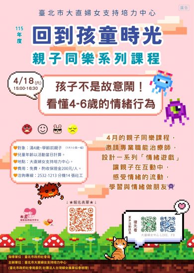 #親子活動~「孩子不是故意鬧:看懂4-6歲的情緒行為」