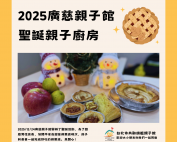 2025廣慈親子館的聖誕活動,讓親子一起合作甜蜜蘋果派,邀請大家和我們一起感受這溫馨的氣氛。
