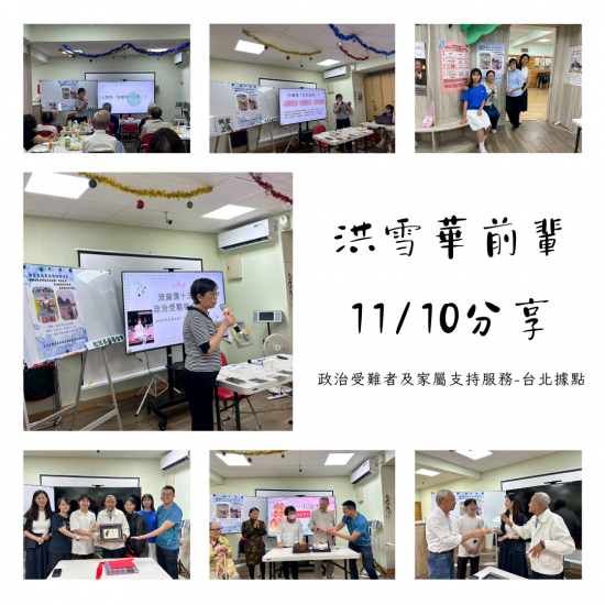 洪雪華前輩今日分享母親的受難經驗,前輩直到四十歲才得知母親受難,一開始感到非常震驚,但後來陪著母親一起面對這段歷史。