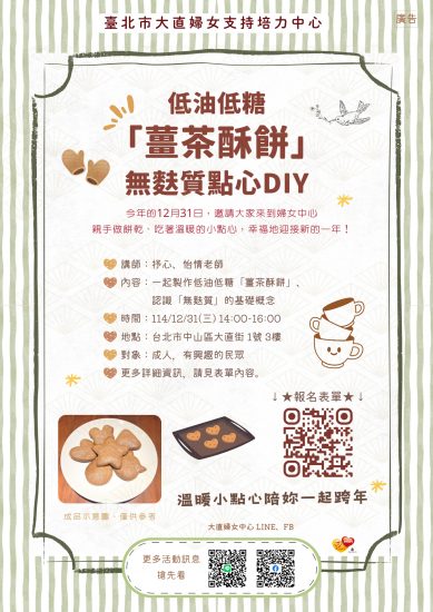 溫暖小點心陪妳一起跨年~低油低糖「薑茶酥餅」無麩質點心DIY