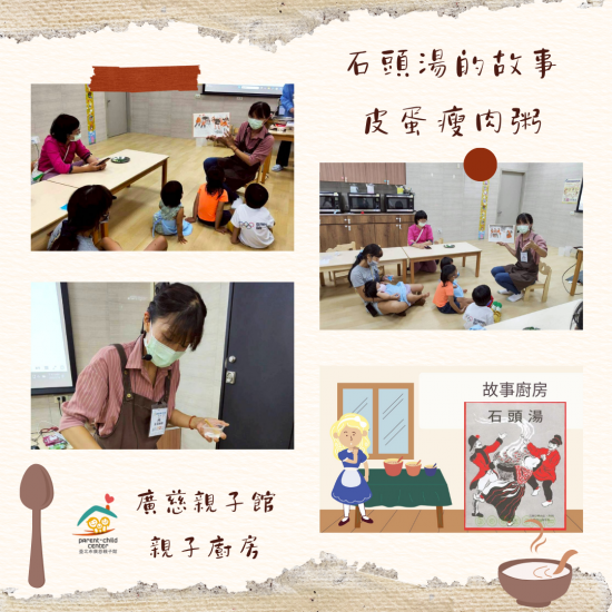 #廣慈親子館 #親子廚房 #皮蛋瘦肉粥 #石頭湯 #有機 #天然 #健康 #臺北市政府委託松年長春基金會