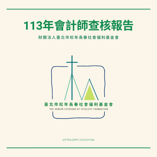 平安: 本會113年會計師查核報告如下: 113年度松春會計師查核報告:【請點我】 2025/10/08|財團法人臺北市松年長春社會福利基金會|0 條留言 歡迎轉貼分享 FacebookTwitterLinkedinRedditTumblrGoogle+PinterestVkEmail 相關文章: Permalink Permalink Permalink Permalink Permalink 留言 取消回覆 Comment