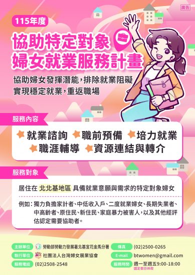 【🌱115年度持續陪你走在就業路上|婦女就業服務不中斷💪】