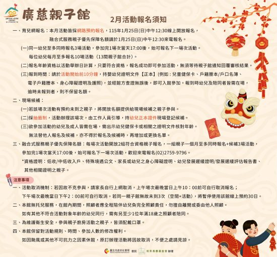 🎉【臺北市廣慈親子館|2 月活動精彩登場】🎉