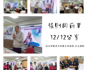 今年12月12日台北據點請張則周教授做分享,請大家和據點一起關心回顧這場活動。