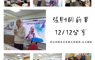 今年12月12日台北據點請張則周教授做分享,請大家和據點一起關心回顧這場活動。