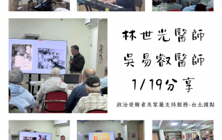 今年1月19日台北據點請林世光醫師分享及吳易叡醫師演出,請大家和據點一起回顧這場活動。