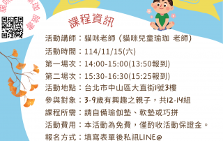 活動報名-大直婦培2025年11月貓咪老師親子瑜珈