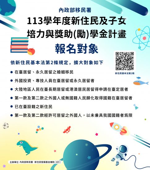 「新住民 及子女-培力與獎助、獎勵學金計畫」