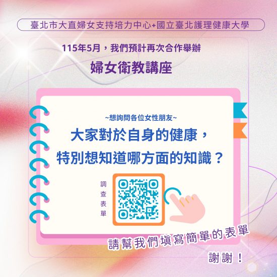 💌大直婦女中心~健康衛教主題需求調查(匿名)