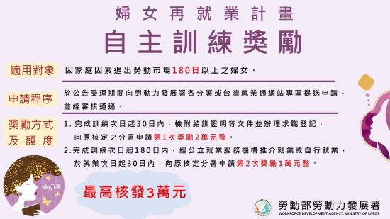 有準備重返職場的女性千萬別錯過這項好康補助囉!