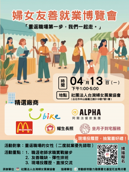 昨天剛分享完「婦女再就業計畫」,今天就有相關的活動資訊囉!