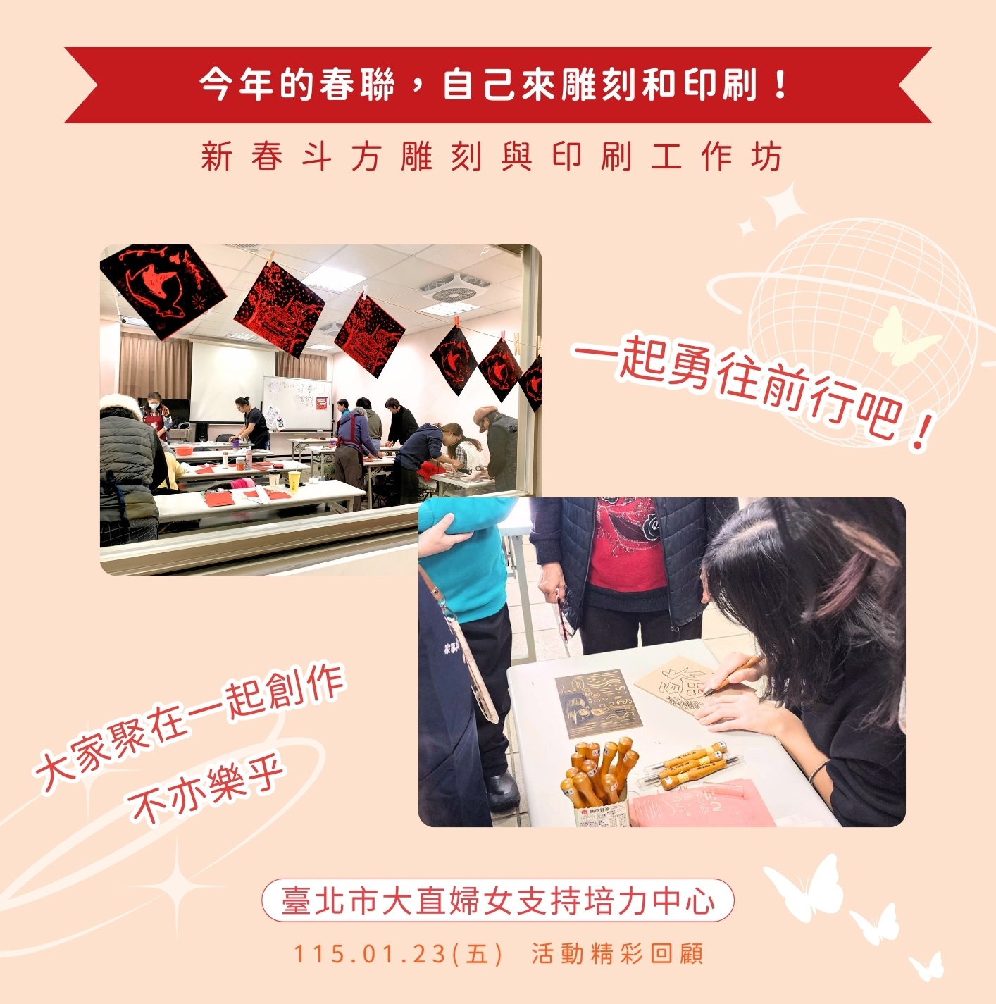 活動精彩直擊🎥~雕刻馬年春聯, 大直婦女中心繼續和大家一起勇往前行🐎
