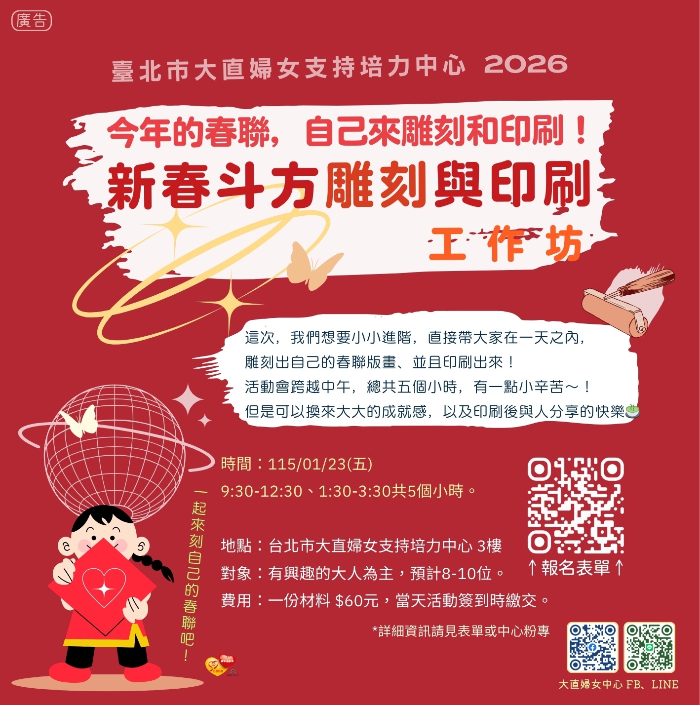 活動報名~今年的春聯,自己來雕刻和印刷!🎠春聯雕刻與印刷工作坊