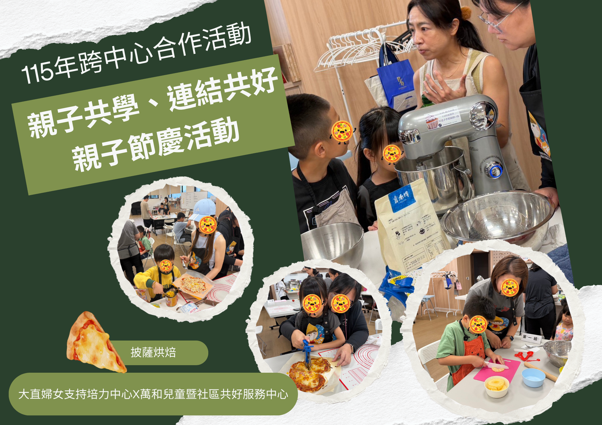 4月中大直婦女中心帶著親子前往位於大同區的 #萬和兒童暨社區共好服務中心,一起製作了好吃又好玩的親子披薩烘培🤤