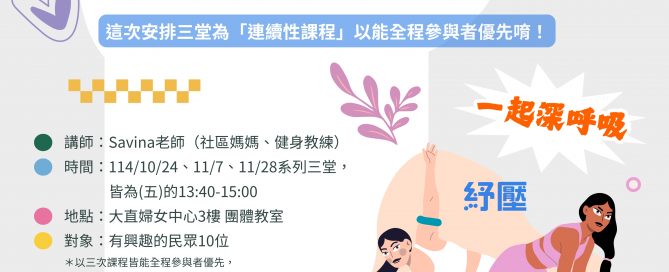 這次安排三堂系列課程,希望透過定時回來與老師見面、練習和複習,可以進一步慢慢熟悉正確的呼吸方法;並且讓大家在急忙的生活下,有個機會去慢下來,去讓神經重塑新的迴路。