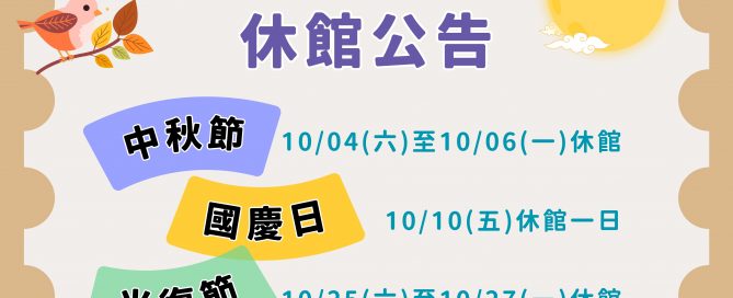 大直婦女中心114年9/27(六)~9/29(一)休館...