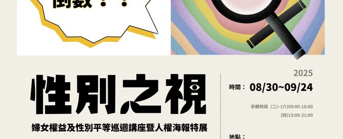 性別之視──婦女權益及性別平等巡迴講座暨人權海報特展,透過文字、符號、色彩等元素, 傳達複雜的社會議題, 讓我們更容易理解這些資訊, 並進一步產生共鳴。