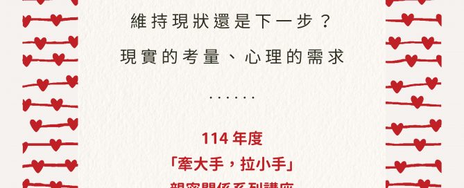 大直婦女支持培力中心在陪伴婦女、陪伴家庭、服務社區的過程中,發現許多人即使因親密關係受過傷,又或者不得已,而需要自己帶著孩子努力生活,仍期待在自己的生命中,再一次相信愛情,相信能找到下一個陪伴自己和孩子過日子的人。
