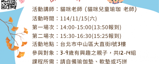 貓咪老師ㄉ親子瑜珈歲末大驚喜🎊兩場次歡迎參加🙌🏼