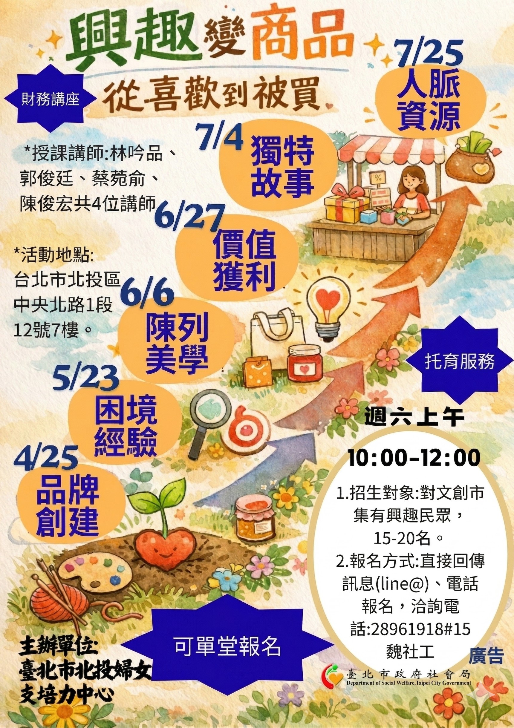 🌿 歡迎對文創市集有興趣的民眾踴躍來電2896-1918#15魏社工報名